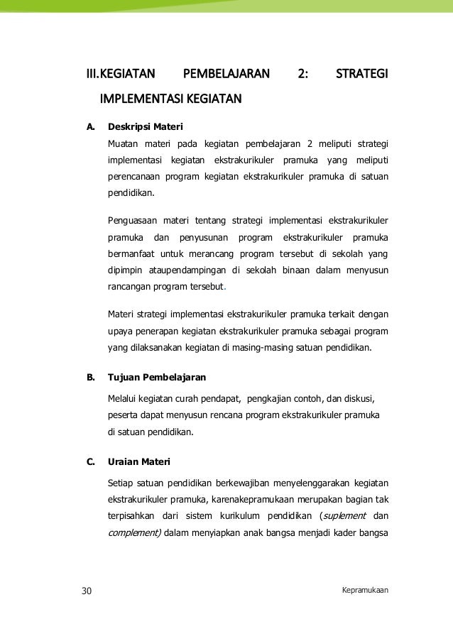 Materi Mos Pramuka from imgv2-1-f.scribdassets.com Materi pramuka penegak kurikulum 2013 pdf latihan soal dan. Pramuka adalah singkatan dari praja muda karana dan merupakan organisasi atau gerakan kepanduan. Pramuka merupaka sebuah kegiatan ekstrakurikuler yang wajib di ikuti dan dilaksanakan di sekolah sesuai dengan kurikulum 2013 revisi 2016. Uraian materi kegiatan ekstrakurikuler pramuka mengacu pada permendikbud ri nomor 81a tahun 2013 tentang implementasi kurikulum 2013 pada lampiran iii, secara jelas dituliskan bahwa kegiatan ekstrakurikuler merupakan salah satu perangkat operasional kurikulum yang perlu disusun dan dituangkan dalam rencana kerja tahunan. Peserta didik dibagi dalam beberapa kelompok, setiap kelompok didampingi oleh seorang pembina pramuka dan atau pembantu pembina. Contoh jadwal kegiatan ldk latihan dasar kepemimpinan Prosedur pelaksanaan model blok kurikulum 2013 esktrakurikuler wajib pendidikan kepramukaan. Worskshop implementasi ektrakurikuler wajib pramuka dalam kurikulum 2013 pertama kali !!